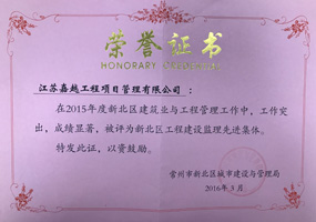 江蘇嘉越工程項目管理有限公司成立于1997年,擁有房屋建筑工程監理甲級資質,市政公用工程監理甲級資質。擁有GB/T19001-ISO9001質量管理體系認證證書。是江蘇省項目管理、全過程工程咨詢試點企業,是江蘇省“優秀監理企業”、“先進監理企業”。是江蘇建設招投標與監理協會常務理事單位,常州市建設監理協會會長單位。